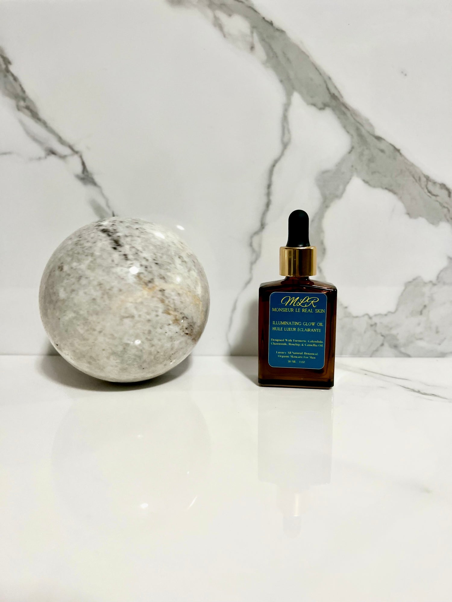 The Monsieur Le Réal SKIN Illuminating Glow Oil is designed with all natural and organic ingredients including Turmeric, Calendula, Chamomile, and Hibiscus to enhance the appearance & smooth the texture of skin by providing powerful antioxidants, Vitamins A,B,C, D, & E, and anti-inflammatory & brightening proprieties.